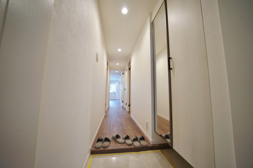 お出かけ前にチェックができる姿見付きの玄関です。