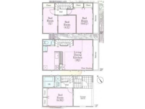 間取りは、3階建ての4LDK。