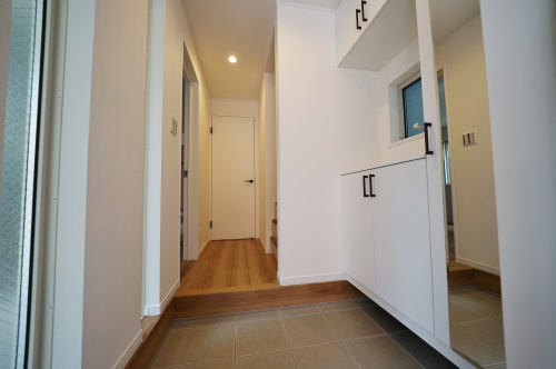 収納力のある玄関。鏡も付いているので、