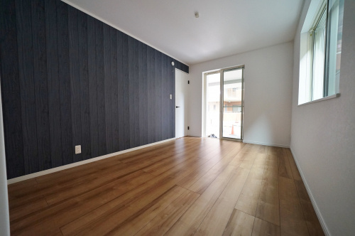 アクセントクロスが落ち着いた色合いの約6帖の洋室です。