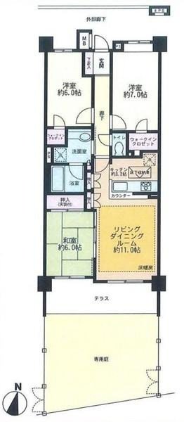 1階部分につき専用庭や床下収納付の