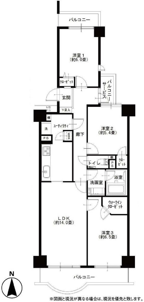 真南向きで陽当たり良好です。