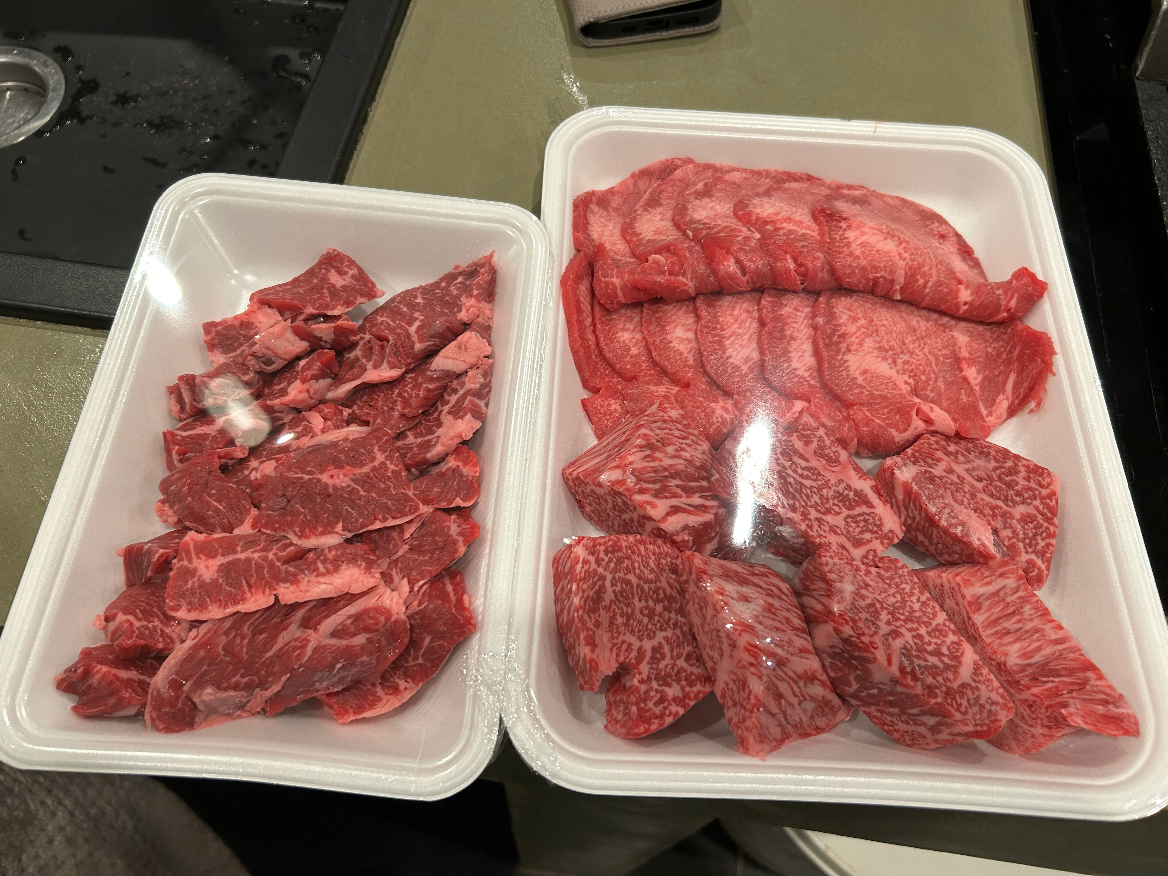 ほぼ妻と二人分の食材なので量が多すぎないように考えながら買いました、旅行で浮かれていっぱい買いたくなりますが、タン、ハラミ、ステーキに絞りました!
