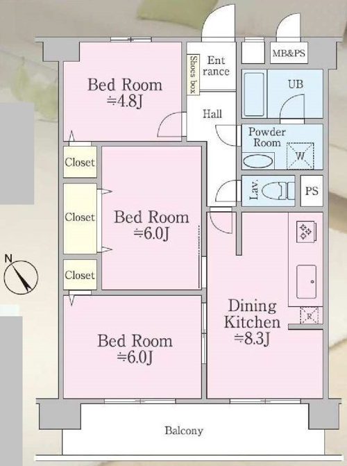 約21帖の広々LDKを配した間取りで、風通りも良く、 明るい陽射しもたっぷりのお住まいです。