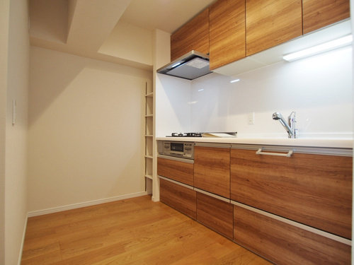収納豊富なシステムキッチンは家事導線をスムーズにしますね。